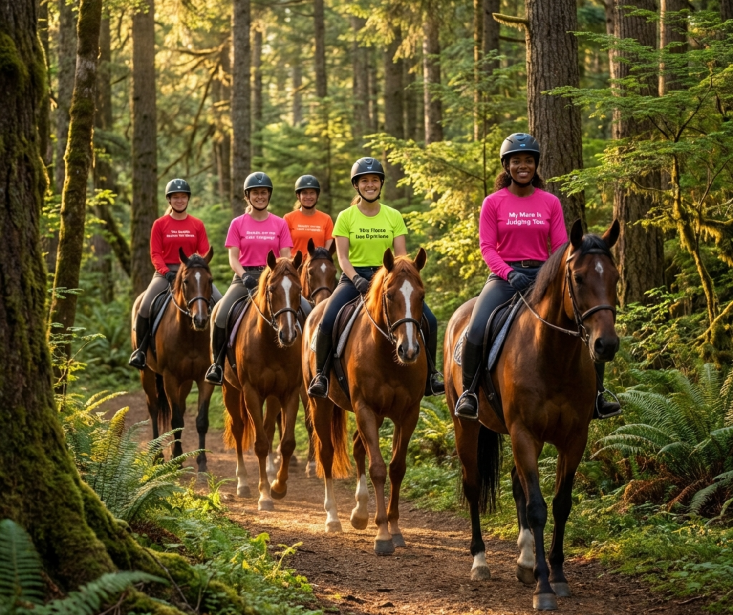 IamGlytja trail shirts were created because trail riders needed apparel that combined safety and humor and no one else was offering it. Designed by real horsewomen, our shirts use high-visibility colors for shared trails, lightweight performance fabric, and messages that communicate awareness without sacrificing personality. They’re made for women who spend more time on the trail than in the arena and want gear that fits real bodies and real riding life.
