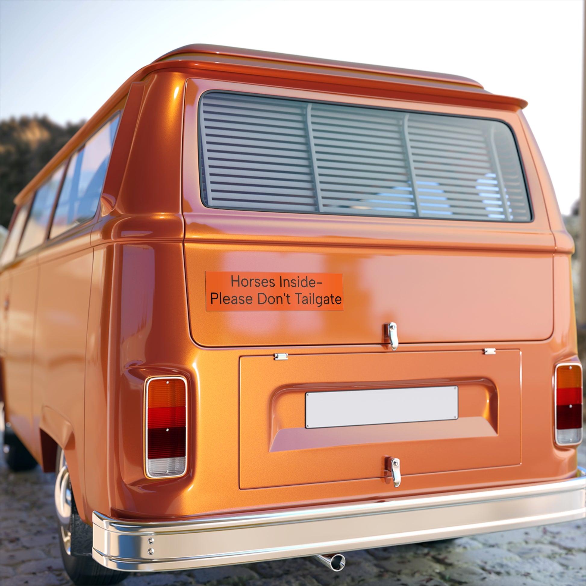 Bright, matte bumper stickers made to keep your road time calm and clear. These durable vinyl stickers carry a clear, readable message that helps drivers understand there are horses onboard and to give extra space. The high-contrast orange with crisp black type stays vivid through sun, rain, and travel thanks to UV protective laminate and water-resistant materials. Easy-peel backing and waterproof adhesive make application quick — stick it on a trailer, van, or rear bumper and know the sign will stay put for years. Printed with eco-solvent inks on premium printable vinyl, they look clean and professional without harsh glare.